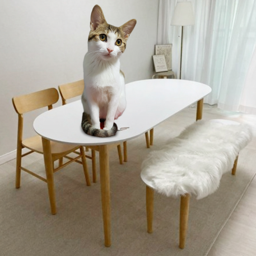 "고양이가 식탁 위에 앉아 있는