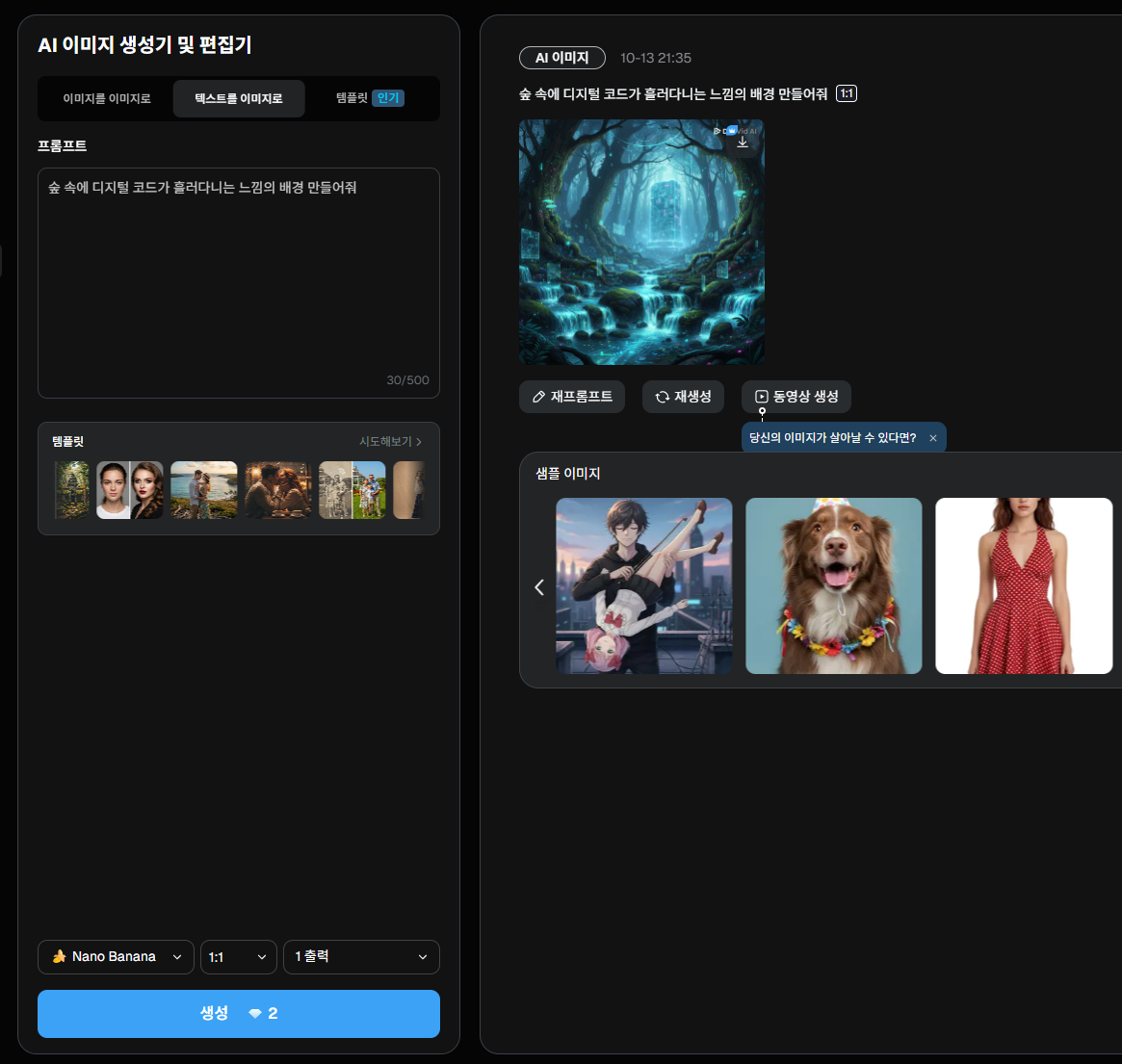 "숲속에 디지털 코드가 흘러 다니는 느낌의 배경 만들어줘" 딱 이렇게 말했는데