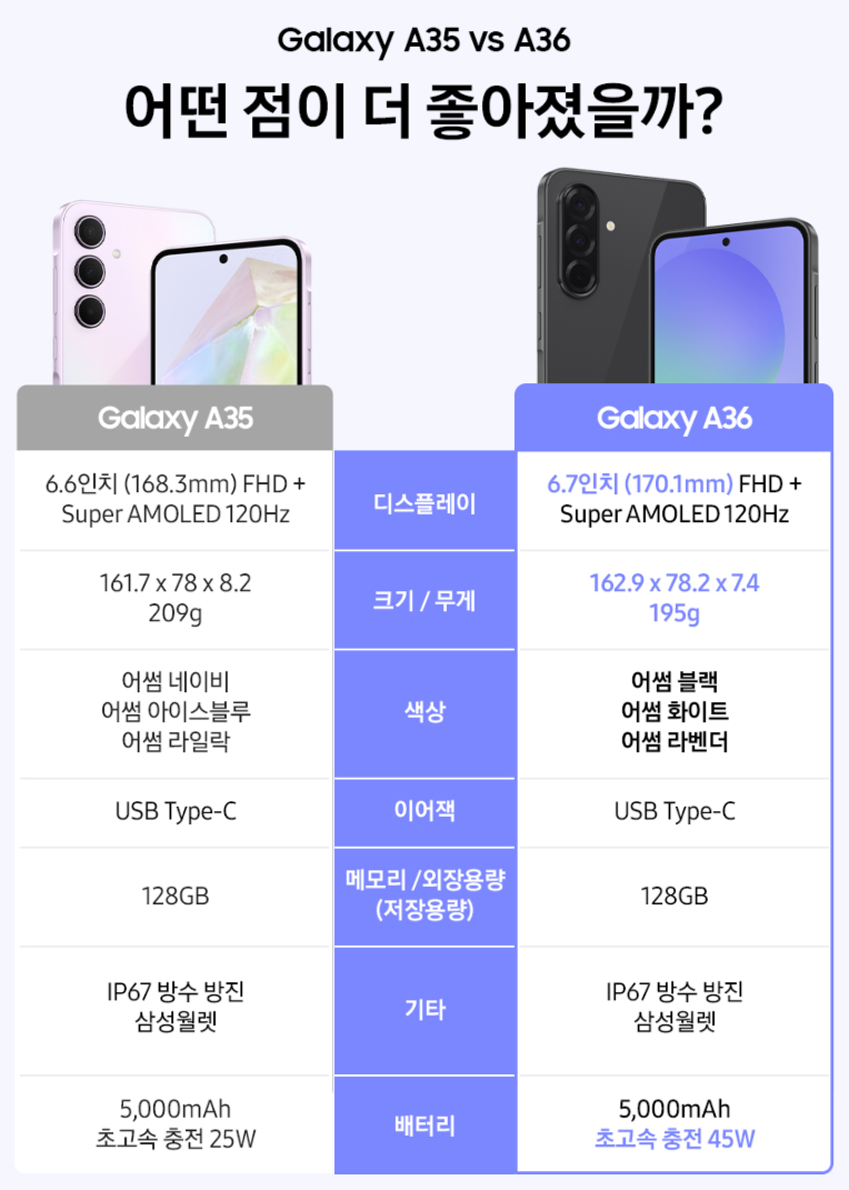 삼성전자 갤럭시 A36 128GB 자급제 SM-A366N : 삼성전자공식파트너 쇼마젠시