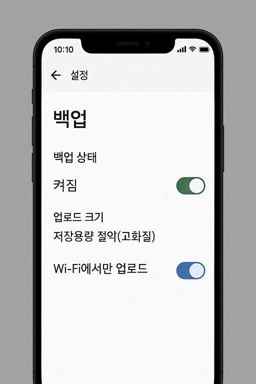 ➡ 기본 설정에서 ‘Wi‑Fi만 사용’ 옵션을 켜면 데이터 요금 부담 없이 백업을 진행할 수 있습니다. 필요하다면 모바일 데이터 사용도 허용할 수 있지만 용량이 많을 때는 Wi‑Fi 환경을 추천합니다.