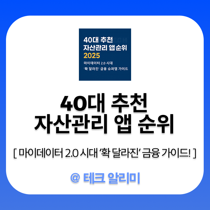 💡핵심 키워드 : 40대 추천 자산관리 앱 순위, 마이데이터 2.0, 퇴직연금 · IRP, 대출 비교, 세금 · 국민연금