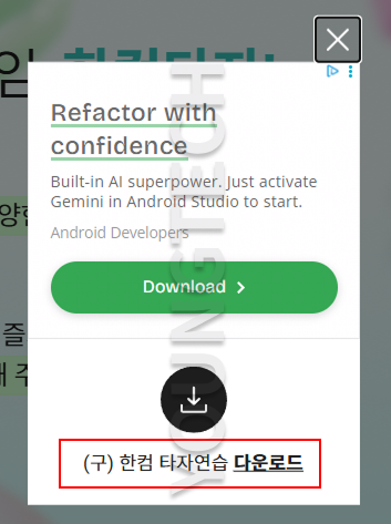 4. "(구) 한컴 타자연습"을 누르고, 팝업창이 뜨면 "(구) 한컴 타자연습 다운로드"를 눌러 파일을 다운로드 받습니다.