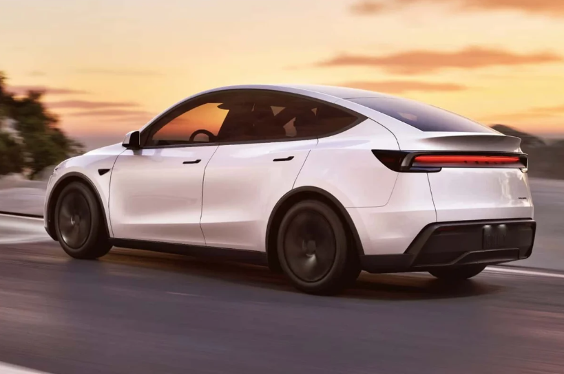 창밖에 테슬라 모델Y 한 대가
